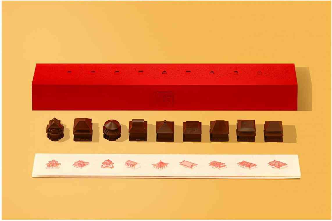 以紫禁城建筑藝術(shù)為設(shè)計元素,將九座宮殿微縮于盈寸大小,內(nèi)呈九枚,栩栩如生,立體型制,精巧雅致,甄選品質(zhì)可可原料,兩款可可經(jīng)典口味,匠心手作,慢工精雕,舌尖品味醇正自然味道,濃香馥郁,入口難忘。