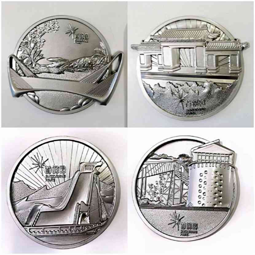 采用鋅合金、立體浮雕、電鍍古鎳,以首鋼八景為設(shè)計靈感,圖案設(shè)計根據(jù)首鋼的工業(yè)特色進(jìn)行工業(yè)風(fēng)設(shè)計。