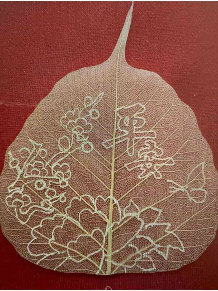 該系列作品采用經(jīng)過技術(shù)處理后的榕樹葉為原材料,使用棉線、絲線在經(jīng)處理后的樹葉上,按照繪制好的圖案進(jìn)行手工刺繡制作的書簽或掛件,圖案可按制作者的喜好去構(gòu)思,是饋贈親朋、商務(wù)往來的最佳選擇。