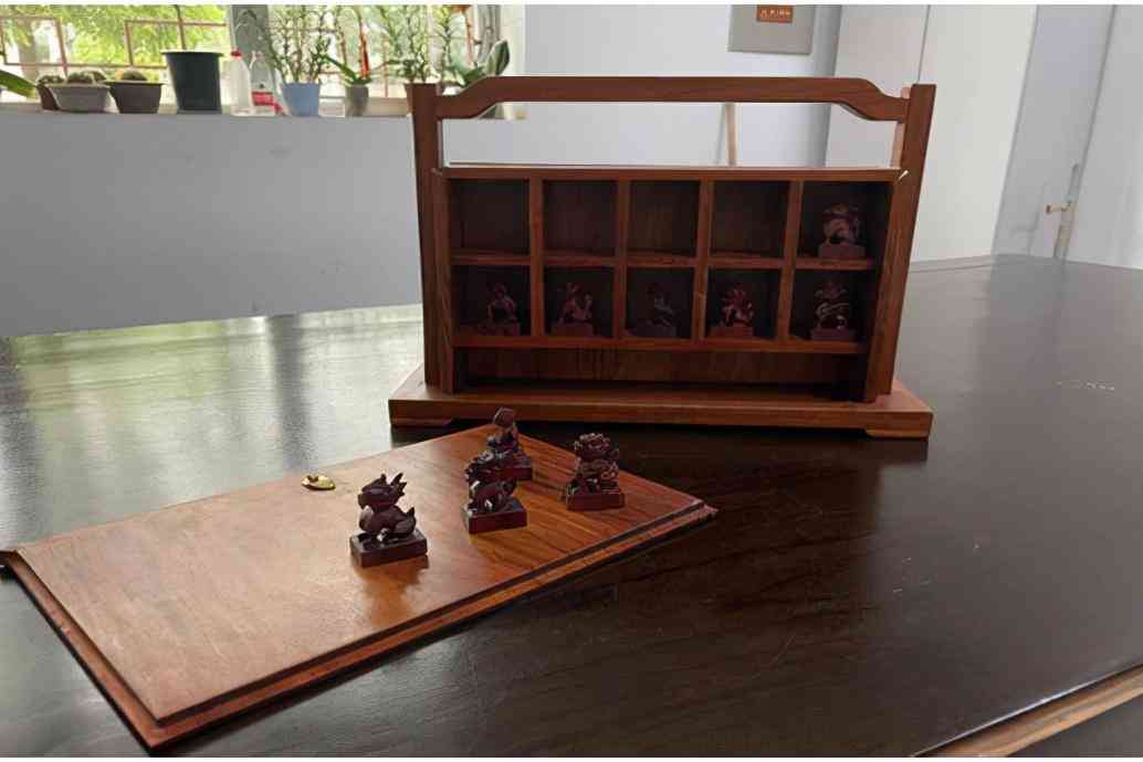 中國建筑的至高存在是太和殿,中國木作的頂峰存在是造辦處。以太和殿上十脊獸為題材,以京作雕刻手法加以細(xì)節(jié)化和理性化,成為十閑章。可整體成套成盒,或單獨包裝。