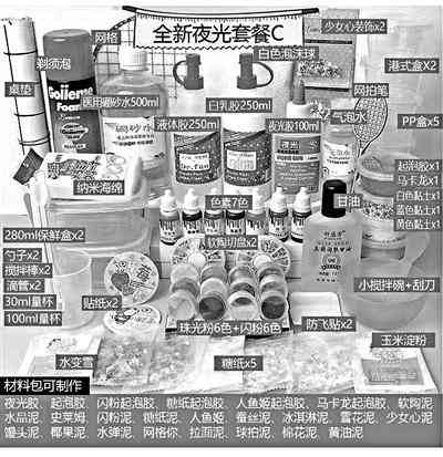 三年過去,水晶泥在電商平臺仍銷量不少。北青報記者檢索多個電商平臺發(fā)現(xiàn),每個平臺均有許多商家銷售水晶泥、棉花泥、發(fā)泡膠、假水等此類玩具,還有商家銷售自制此類玩具的材料包。這些產(chǎn)品有的按盒賣,每盒價格約2元,多數(shù)簡易透明包裝盒上沒有產(chǎn)品說明、生產(chǎn)廠家和生產(chǎn)日期等信息,有的按禮盒套裝賣,不同規(guī)格的套裝價格從不足10元到400多元不等。