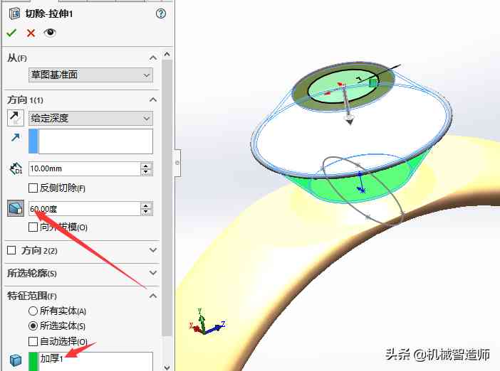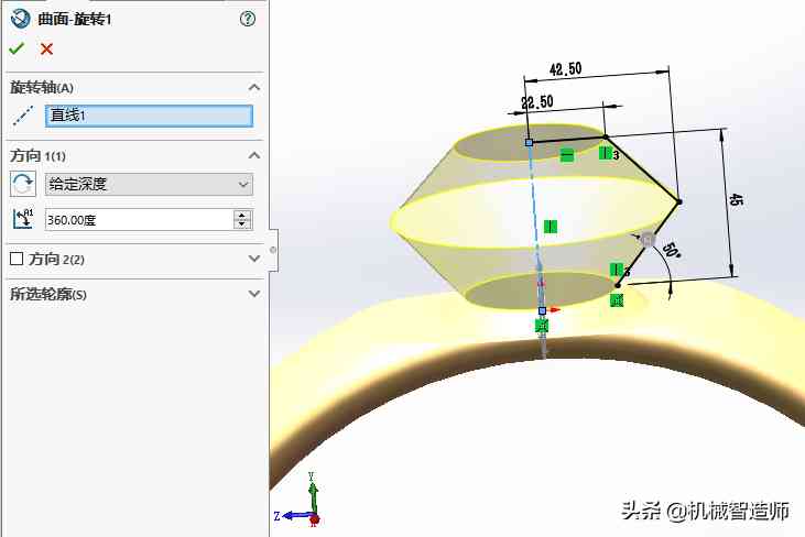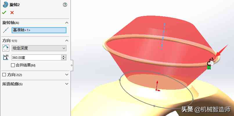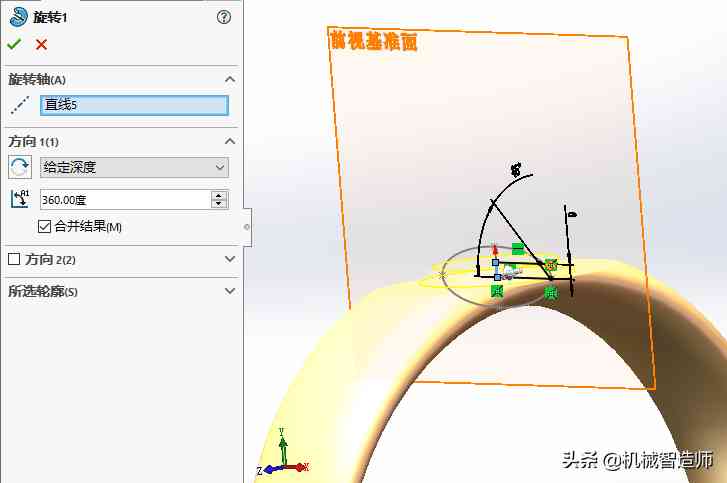 5、旋轉(zhuǎn),在前視基準(zhǔn)面上繪制圖下草圖,旋轉(zhuǎn)。