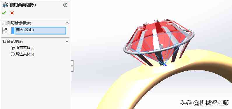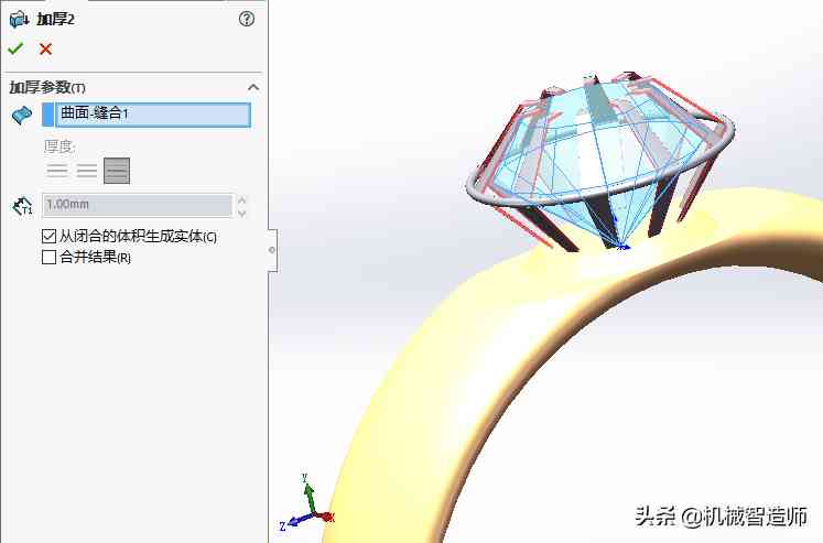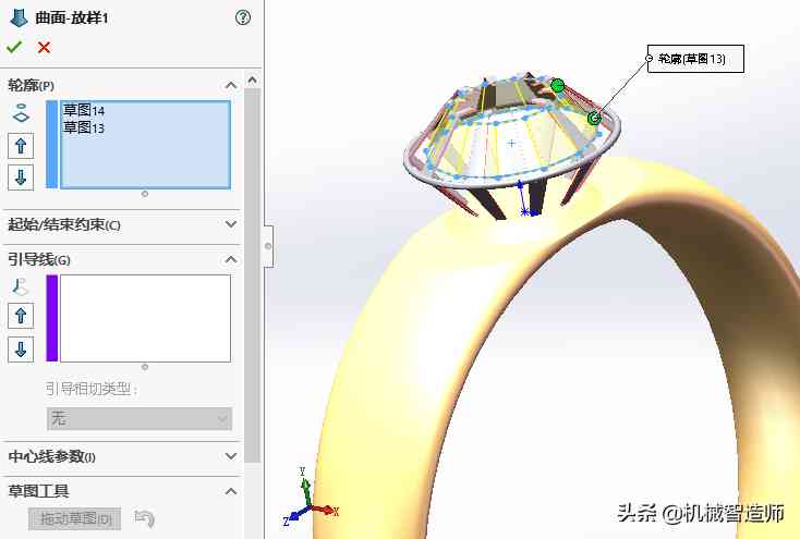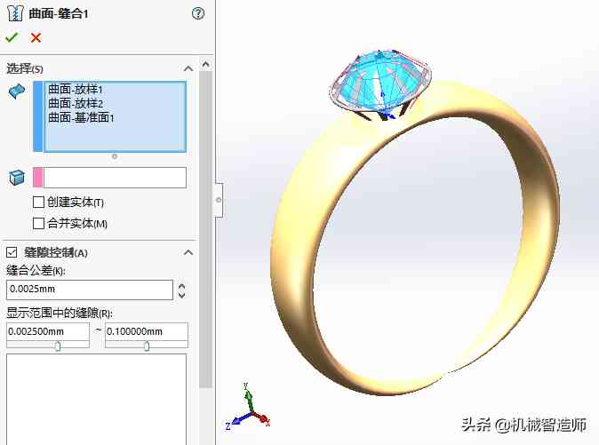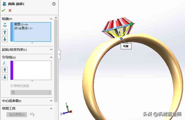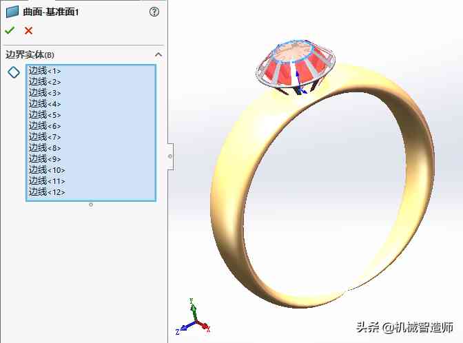 導(dǎo)讀: 紅寶石戒指1、新建基準(zhǔn)平面基準(zhǔn)面1基準(zhǔn)面22、放樣曲面,在新建的兩個基準(zhǔn)面上分別草繪一個點,在前視基準(zhǔn)面上繪制一個橢圓,...