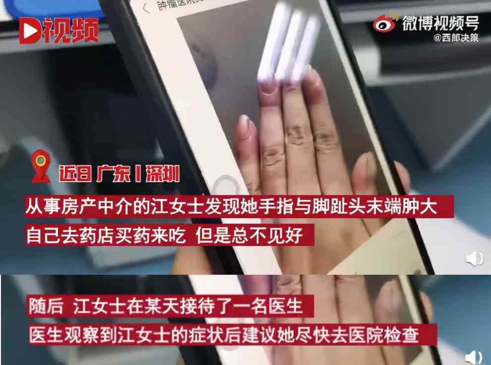 近日,廣東深圳一女子因手指末端腫大去醫(yī)院檢查,卻無意中發(fā)現(xiàn)肺癌。