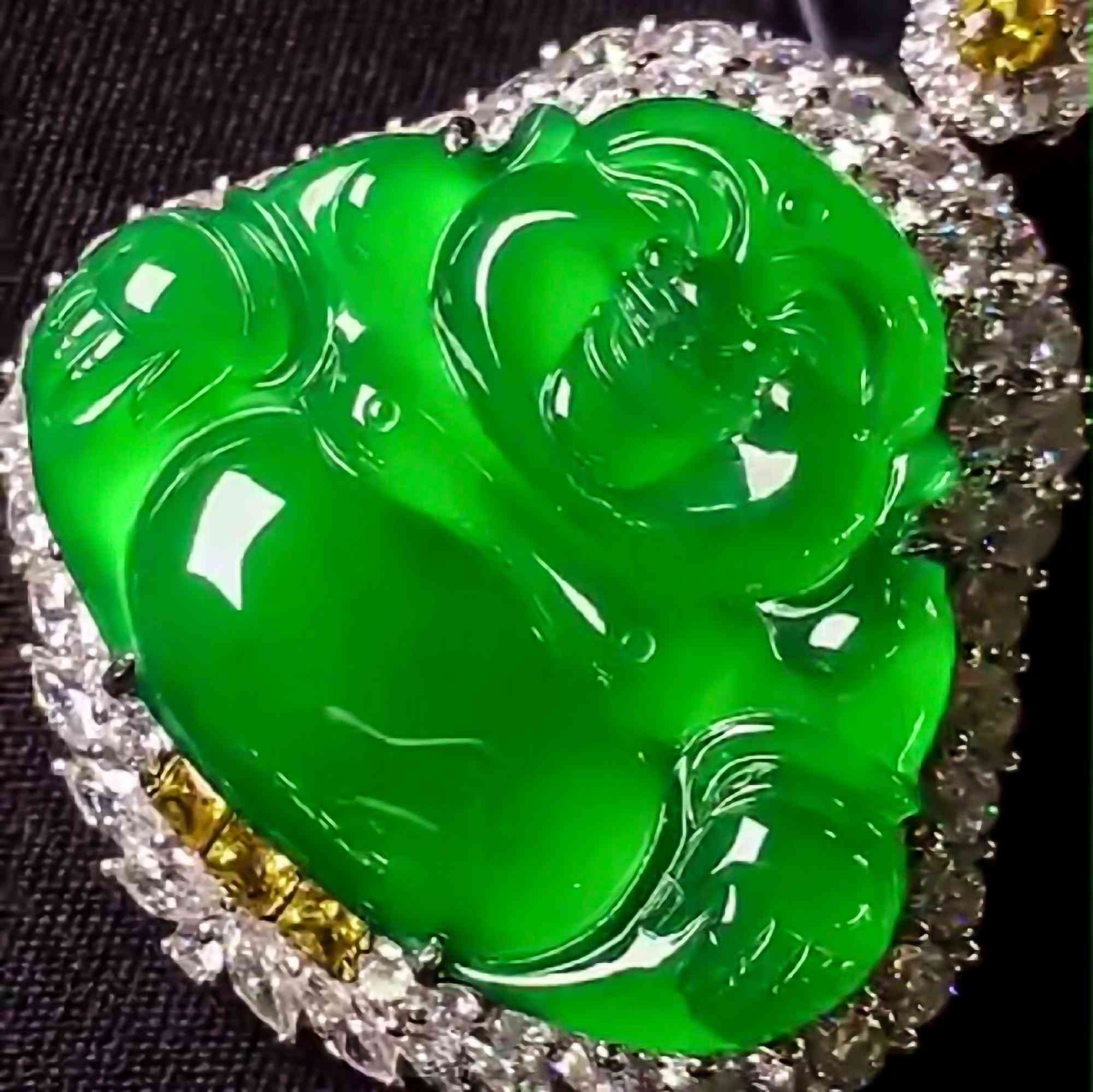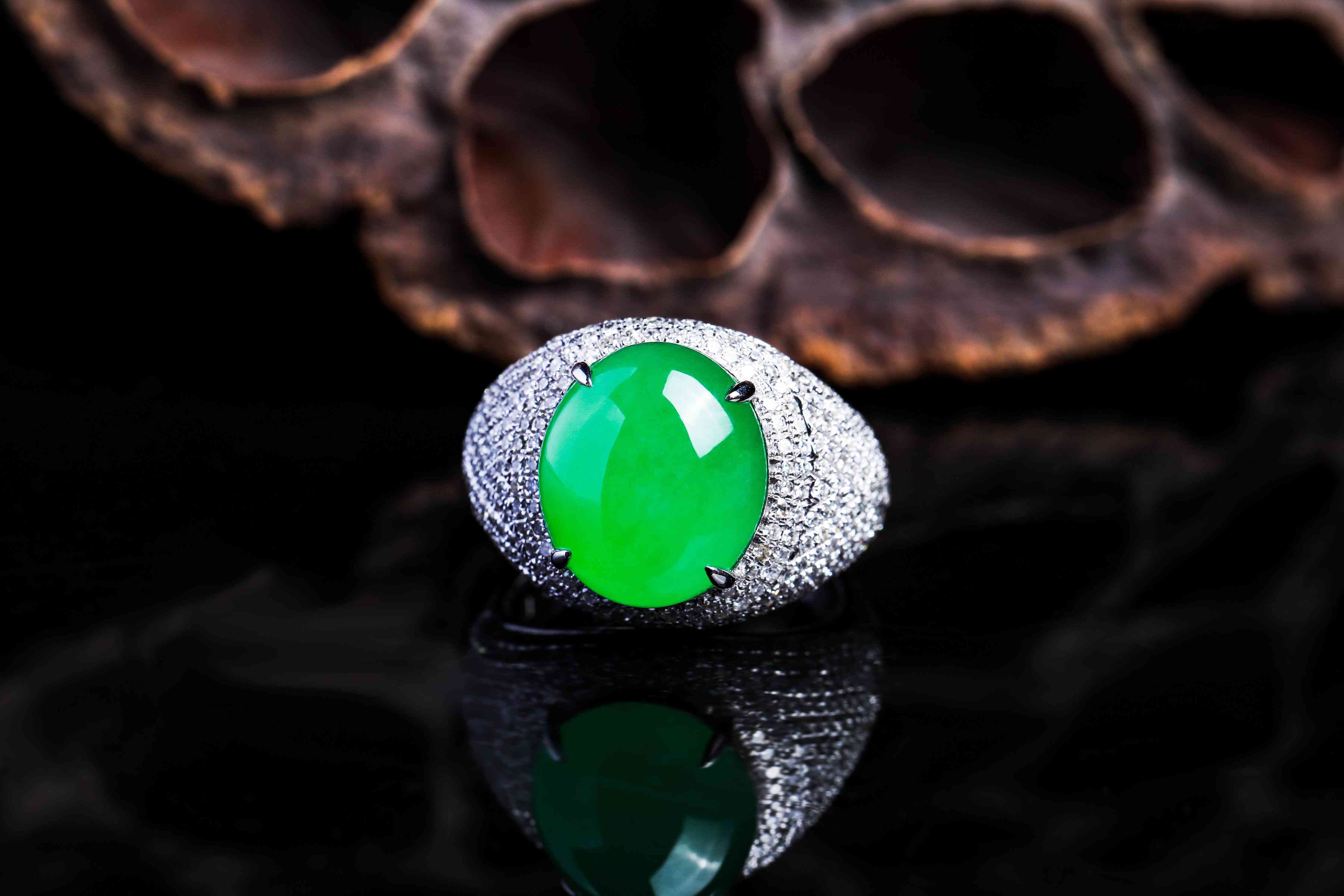 嚴(yán)格地講,帝王綠翡翠特指老坑玻璃種翡翠呈現(xiàn)祖母綠顏色的翡翠,因此帝王綠必配好種,這樣即使光弱的時候因?yàn)榉N水上等可以發(fā)光,仍然可以產(chǎn)生很美的視覺效果。