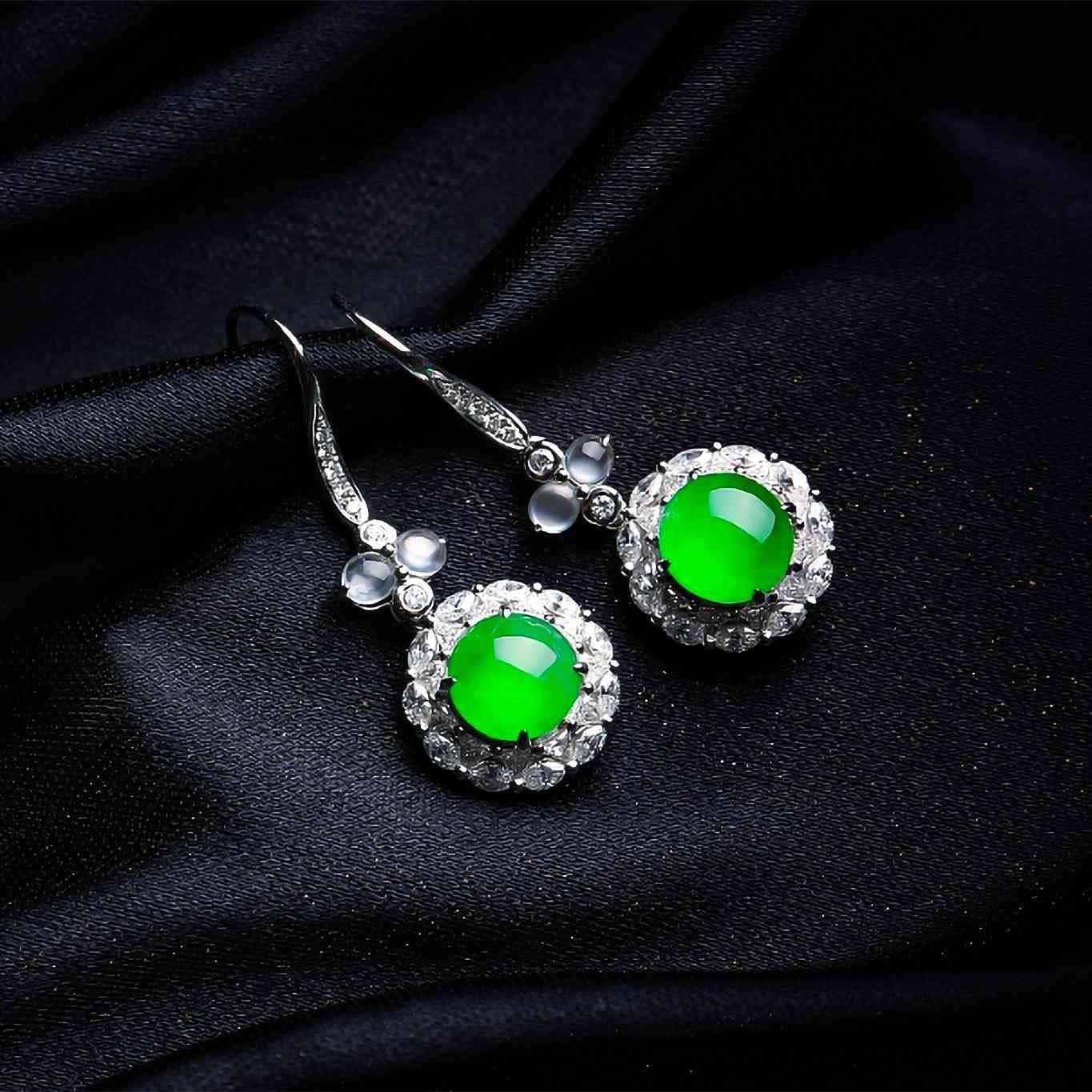 它們的底子也更有不同,陽綠為化底,綠多而黃少,透明度一般但是給人一種亮堂堂的質(zhì)感;而帝王綠則不會有絮狀或者團(tuán)狀的結(jié)晶情況,整體底子上而言也顯得晶瑩剔透。