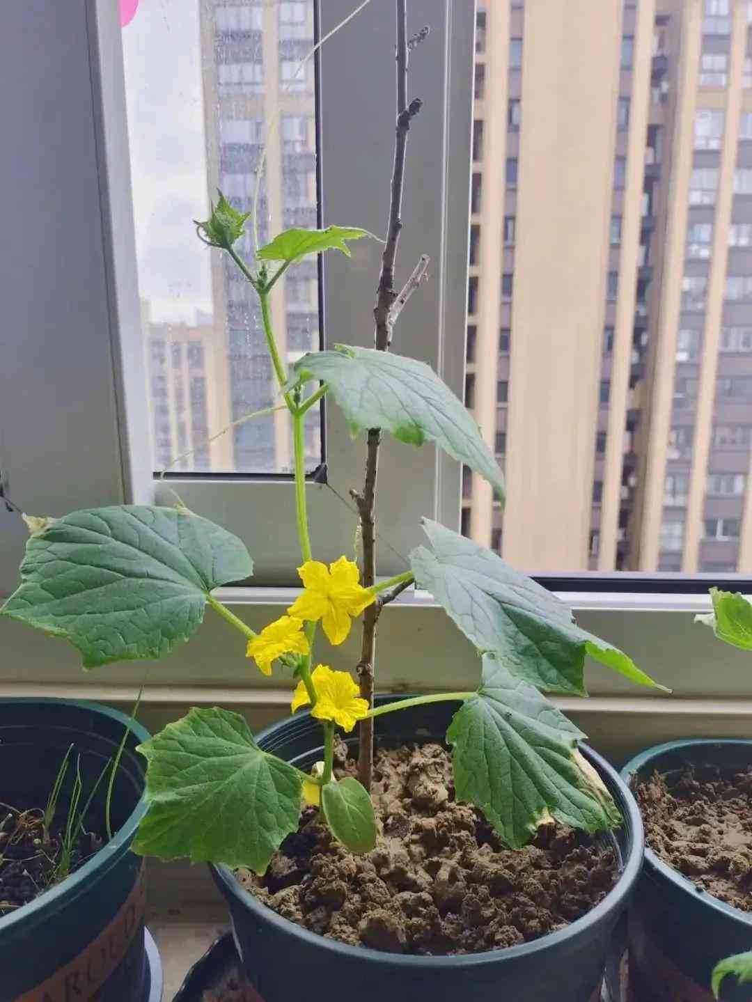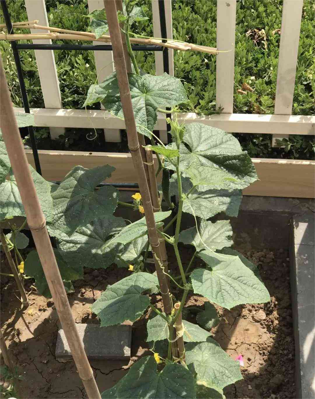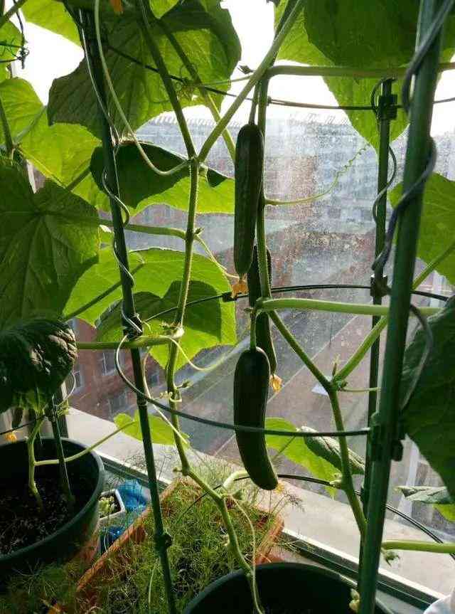 ·在陽臺上,黃瓜莖能長到1~2m以上,這個時候需要搭支架。只有搭好支架,黃瓜藤才能長得茂盛,黃瓜才能長得好。