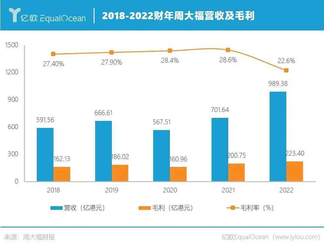 2022財年,周大福實現(xiàn)總營收989.38億港元,相比2021財年的701.64億港元增長41.01%。此增速高于行業(yè)平均值——國家統(tǒng)計局?jǐn)?shù)據(jù)顯示,2021年,我國金銀珠寶類零售總額達到3041億元,同比增長29.8%。