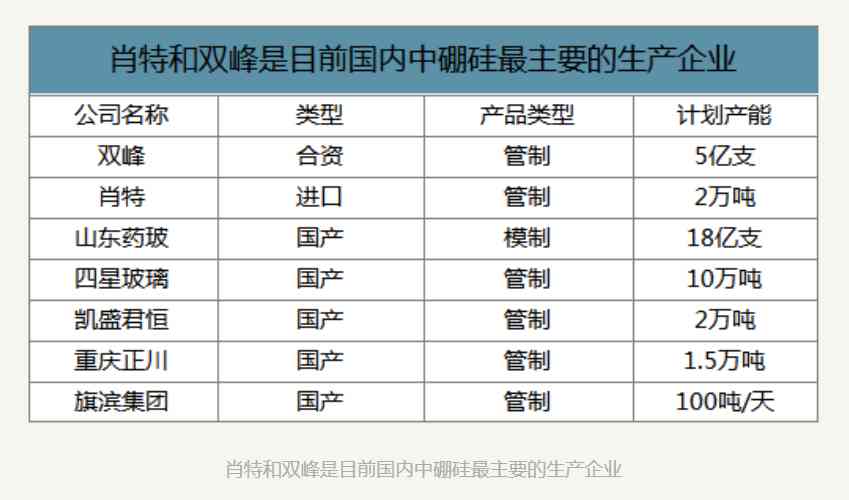 結(jié)合現(xiàn)在中國的政策以及健康中國的理念,醫(yī)藥包裝正在不斷升級,這將大力推動低硼硅玻璃升級為中硼硅玻璃。預(yù)計(jì)未來5-10年,中國30萬噸的藥用玻璃當(dāng)中將會有30%-40%由低硼硅玻璃升級為中硼硅玻璃。