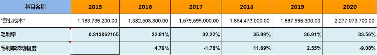 毛利率小于40%,中低毛利率說明公司的產(chǎn)品或服務(wù)的競爭力較差;毛利率波動幅度基本小于10%,優(yōu)秀的公司。