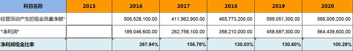 過去5年的平均凈利潤現(xiàn)金比率大于100% ,現(xiàn)金流很好。