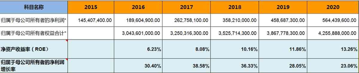 2015年歸母凈利潤1.45億元,2020年歸母凈利潤5.64億元,復(fù)合增長率31.21%,未來3年的歸母凈利潤增長率取25%。公司總股本5.95億股。