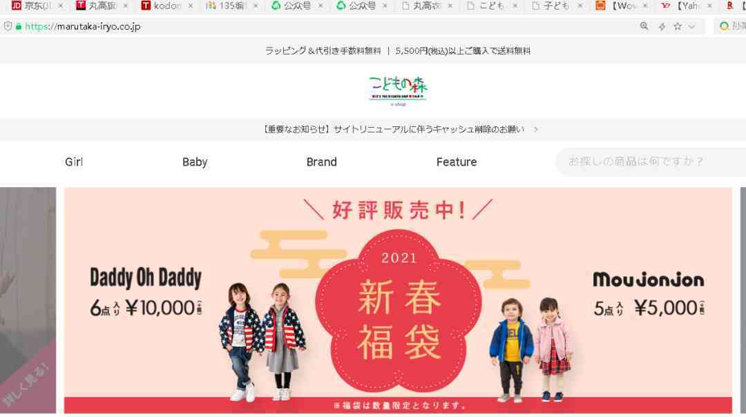 如上圖所示,丸高衣料在日本的官網(wǎng)店鋪,也是用的“子どもの森”。