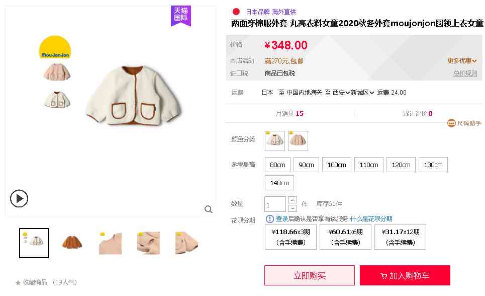 還有這件星星斗篷(嬰童款),也是日本制的,只要三百多,搭配2件打底衣服湊個(gè)600元,就能打8折,還減80(滿減60+粉絲專享券20),折算下來(lái)只要兩百多!哪里能買(mǎi)到 200多的日本制??!