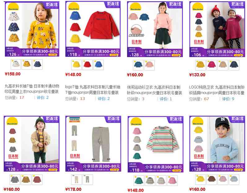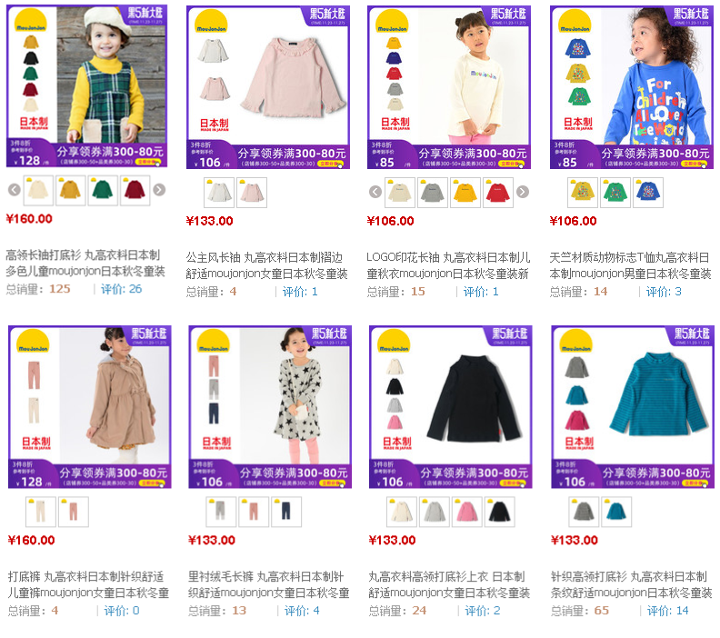 要說(shuō)明一下,丸高衣料在天貓的旗艦店不叫“丸高衣料旗艦店”,而是叫“kodomonomori童裝海外旗艦店”。當(dāng)然,你搜“丸高衣料”,應(yīng)該也能蹦出kodomonomori童裝海外旗艦店的商品。