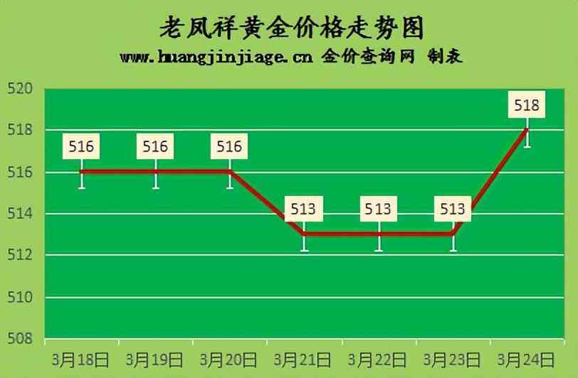 周大福黃金價(jià)格515元/克(漲5元),六福黃金價(jià)格515元/克(漲5元),周生生黃金價(jià)格517元/克(漲8元),金至尊金價(jià)515元/克(漲5元),謝瑞麟金價(jià)517元/克(漲8元),老鳳祥黃金價(jià)格518元/克(漲5元),老廟黃金價(jià)格517元/克(漲7元),菜百金價(jià)510元/克(漲5元),周大生金價(jià)515元/克(漲5元),中國黃金價(jià)格509元(漲3元),金大福金價(jià)510元/克(漲5元),潮宏基金價(jià)515元/克(漲5元)。