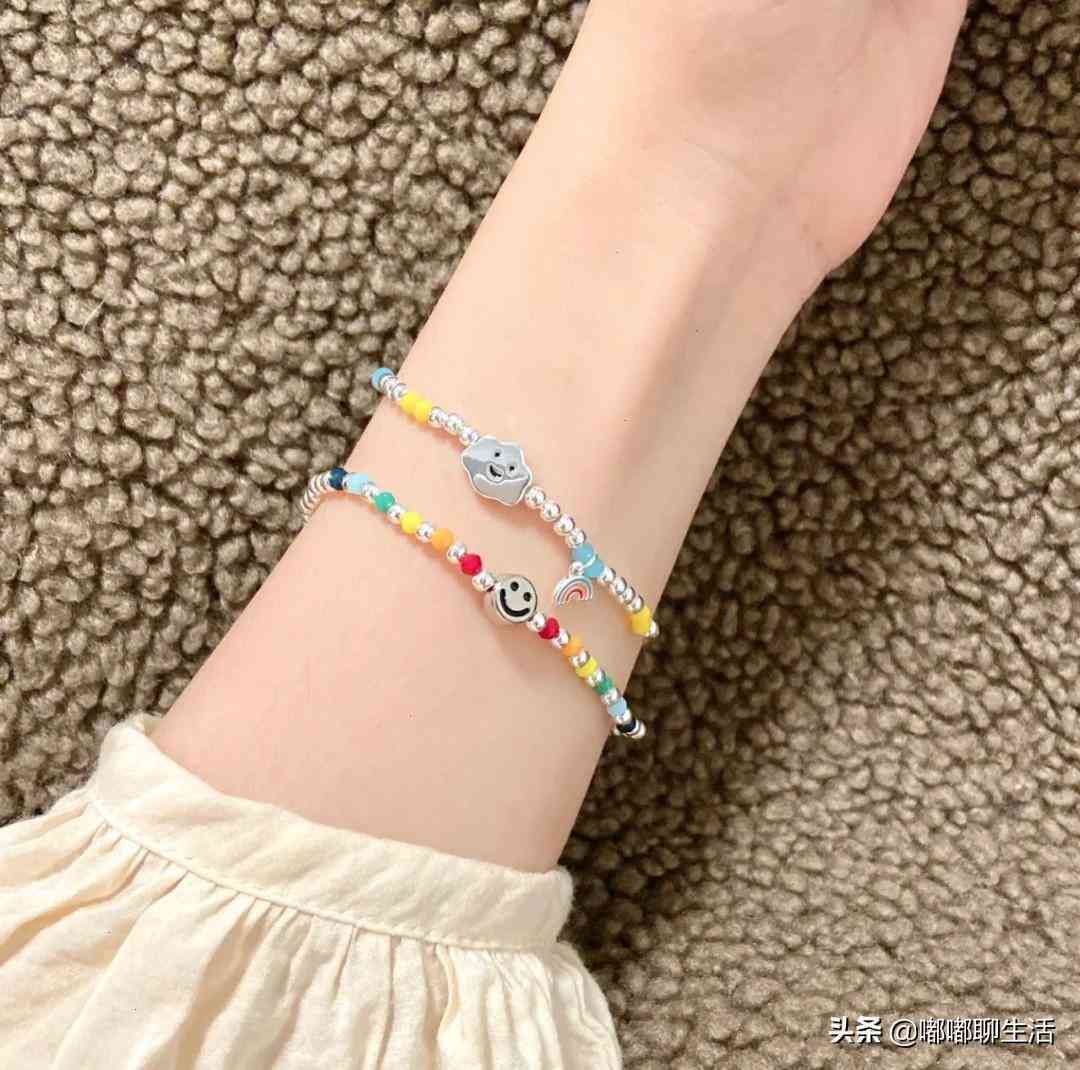 超級適合夏天,一定要戴起來,這條手鏈?zhǔn)怯貌噬楹豌y飾串起來的,笑臉,云朵,彩虹元素點(diǎn)綴,俏皮活潑,和夏天真的很和諧,戴在手上朝氣蓬勃,又甜又酷又百搭,搭配衣服很吸睛。色彩感特強(qiáng)~夏天戴著這樣的飾品也給人撲面而來的涼意呢~
