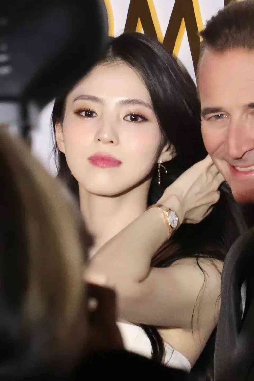 身穿抹胸禮服的韓素希不僅身材優(yōu)勢盡顯,冷艷嫵媚的“輕泰妝”讓她毫不費力地就營造出了清冷感氛圍,在合影時吸引住了所有人的目光。