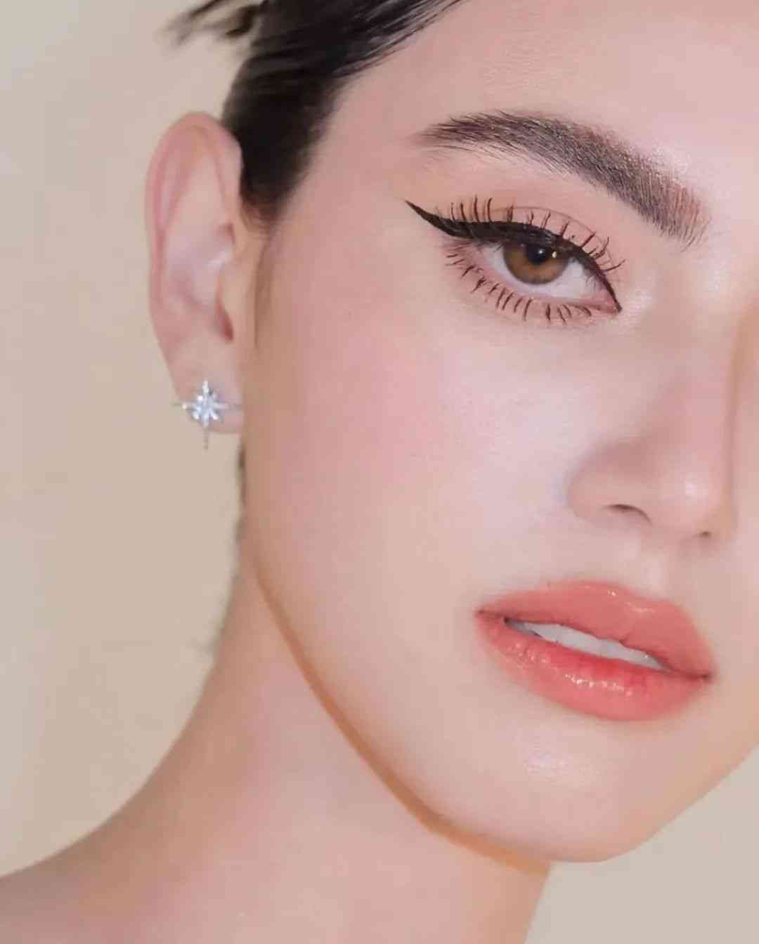 Mai Davika也游刃有余地拿捏了“輕泰妝”,天生眉毛毛流感較強(qiáng)的她,在畫眉妝時會將眉型描畫得更為精致,根根分明的睫毛放大了雙眼,大面積的粉嫩腮紅突顯好氣色,水嫩的唇釉打造出嘟嘟唇的妝效。相比早期的泰式妝容,現(xiàn)在流行的泰妝明顯更“輕”。“輕泰妝”的特點是在突出臉部立體飽滿的同時,又做到了清透有光澤。