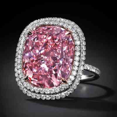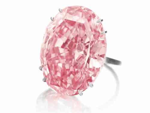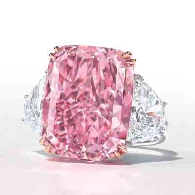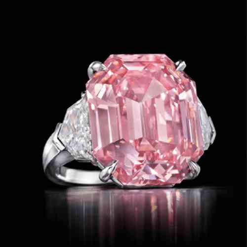 2010年,這顆完美的粉紅色鉆石在香港佳士得拍賣會上以超過 2300 萬美元的價格賣給了一位不知名的競標(biāo)者。這顆鉆石是同類中的一顆,具有強烈的粉紅色和非常非常輕微的內(nèi)含物凈度。它被切割成祖母綠形狀,重約14.23克拉。完美的粉紅色鉆石鑲嵌在花式戒指中的兩顆規(guī)則形狀的鉆石中。