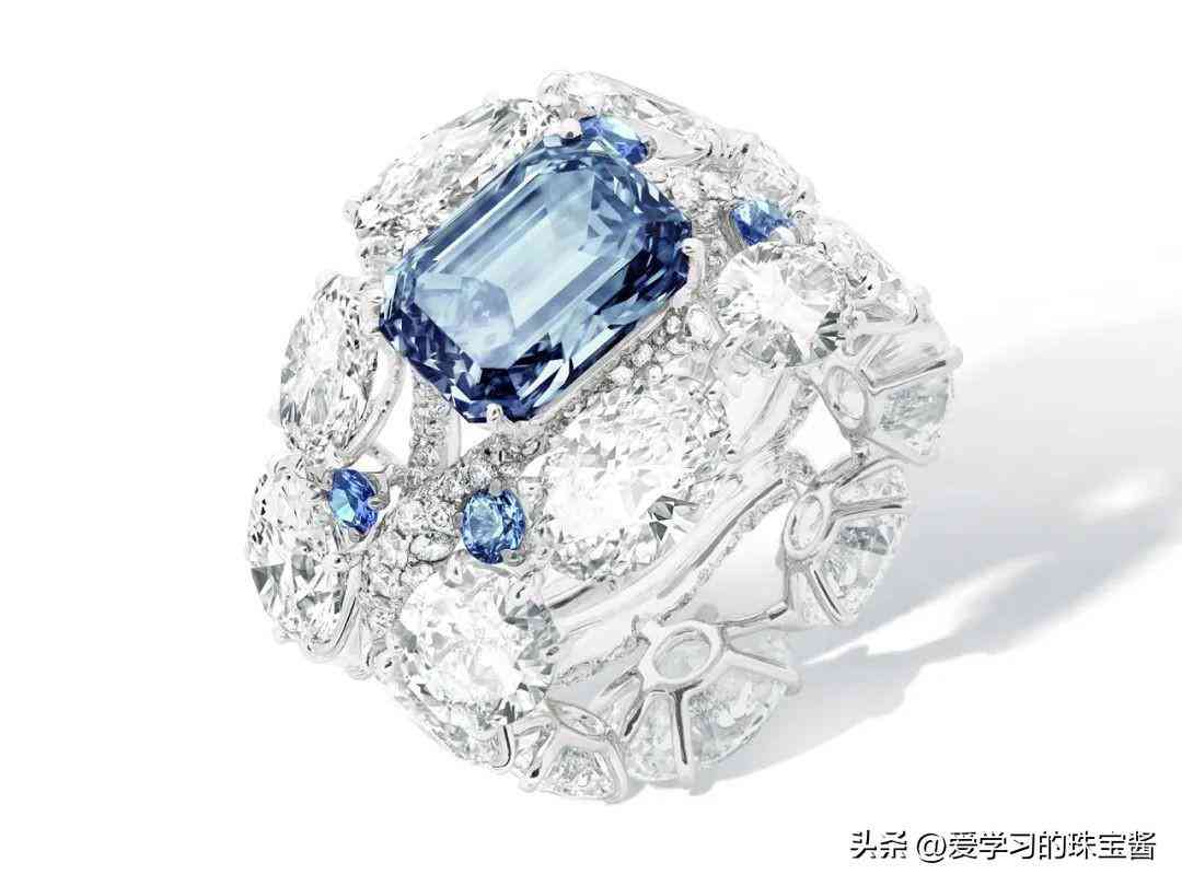 CINDY CHAO 藝術珠寶在2022年「稀世?傳承──藝術彩鉆系列」(The Gem Art Collection)中推出這枚藍鉆戒指,主石為一顆稀有的3.31ct祖母綠型切割藍鉆,襯以明亮的橢圓形、圓形切割鉆石,如同純凈明朗的藍色晴空。