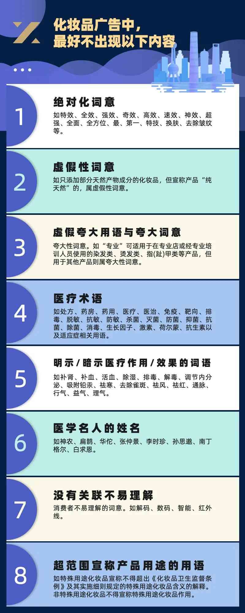 對(duì)此,《反不正當(dāng)競(jìng)爭(zhēng)法》《廣告法》《化妝品監(jiān)督管理?xiàng)l例》和《化妝品標(biāo)簽管理辦法》中均有相應(yīng)規(guī)范。