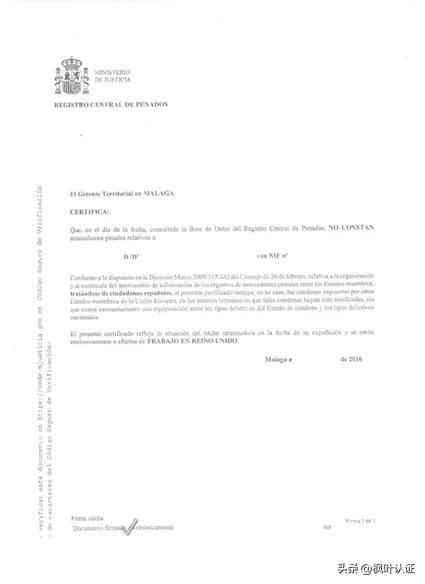如果申請人不在西班牙境內(nèi),需要申請的流程和材料如下:1,代辦。本人攜帶護照和DNI或NIE直接到當?shù)匚靼嘌朗桂^填寫790申請表和委托書并公證,如果不公證委托書代理人將無法拿到無犯罪記錄原件,要留意。2,郵寄。付款后郵寄到西班牙請親戚朋友或找代辦機構(gòu)辦理。申請費目前2019年是3.78歐,西班牙司法部信息如下: