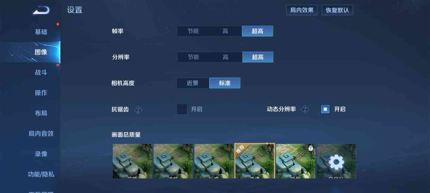 《王者榮耀》畫質(zhì)設(shè)置如上