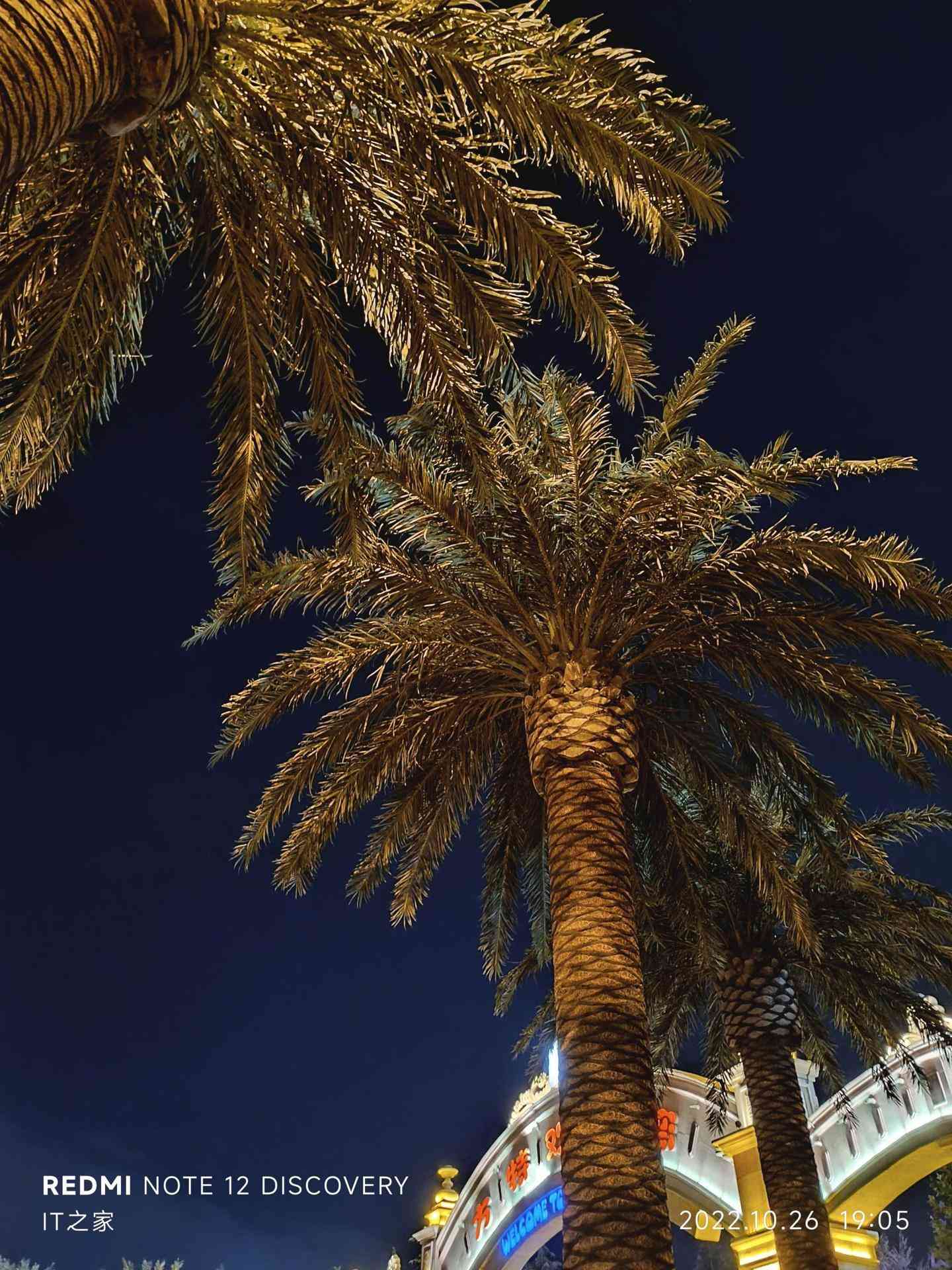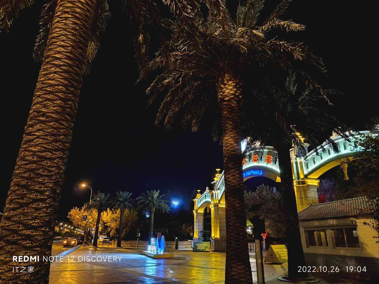 在夜晚環(huán)境下,Redmi Note 12 探索版樣張的觀感非常不錯,亮部也盡可能的克制住了光線溢出,倒不是那種夜視儀調(diào)教,保證了夜晚的氛圍感。開啟 AI 模式之后,識別到夜晚場景,畫面亮度、對比度會明顯提升。