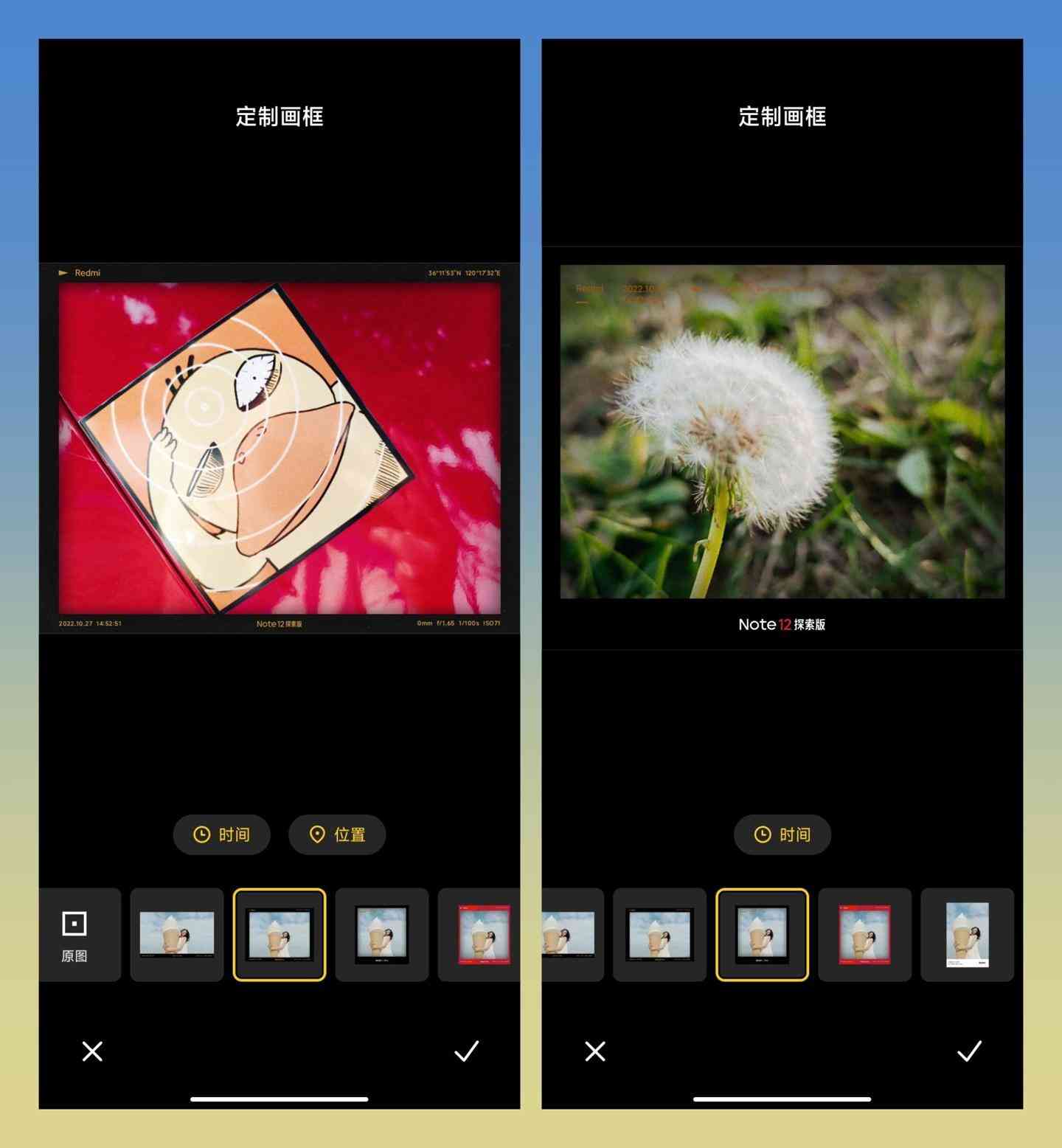 不僅如此,Note 12 膠片相機(jī)還專門設(shè)計了膠片畫框,在照片編輯里,即可添加不同風(fēng)格、樣式,但同樣都是“逼格滿滿”的畫框。