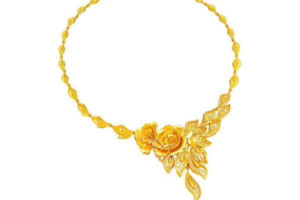 如果婚禮當(dāng)天的禮服是秀禾裙、龍鳳褂、旗袍等中式禮服,那么最好要搭配黃金首飾,夸張一點(diǎn)的反而會(huì)更加耀眼。比如上面這一款國韻芳華的金項(xiàng)鏈,吊墜是牡丹花的造型,鏈條則是花瓣與葉子。整個(gè)造型則寓意著花開富貴,圓圓滿滿。十分適合穿秀禾裙或龍鳳褂時(shí)佩戴,平時(shí)搭配旗袍也很好看。