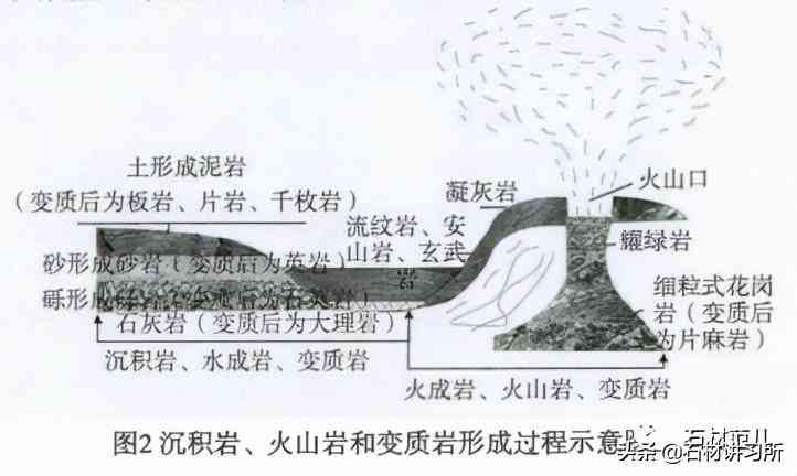 天然巖石在自然界極為豐富,其形成見圖2。據(jù)初步統(tǒng)計,已達(dá)2000余種。礦物的種類有硅酸鹽、碳酸鹽礦物、硫酸鹽礦物、氧化物、氫氧化物、鹵化物、有機礦物、硼酸鹽、硝酸鹽、神酸鹽、磷酸鹽、饑酸鹽、銘酸鹽、鴇酸鹽、鑰酸鹽等。