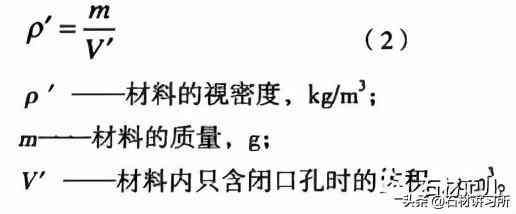 自然狀態(tài)的材料,其質(zhì)量與其體積之比,稱為表觀密度。按式(1)計算: