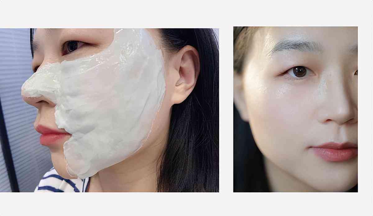 新鮮調(diào)制DIY的使用方式也很有趣,儀式感滿滿。自帶面膜碗和挖勺攪拌棒,先將精華水倒入碗中,再倒入精華粉,混合攪拌均勻,就可以自由敷臉啦,質(zhì)地軟糯,上臉很舒適。15分鐘左右,等待精華液浸潤到肌底,面膜可以成“皮”揭下來,非常解壓。泛紅起皮都有緩解,毛孔更加細膩,皮膚整體更有光澤感。
