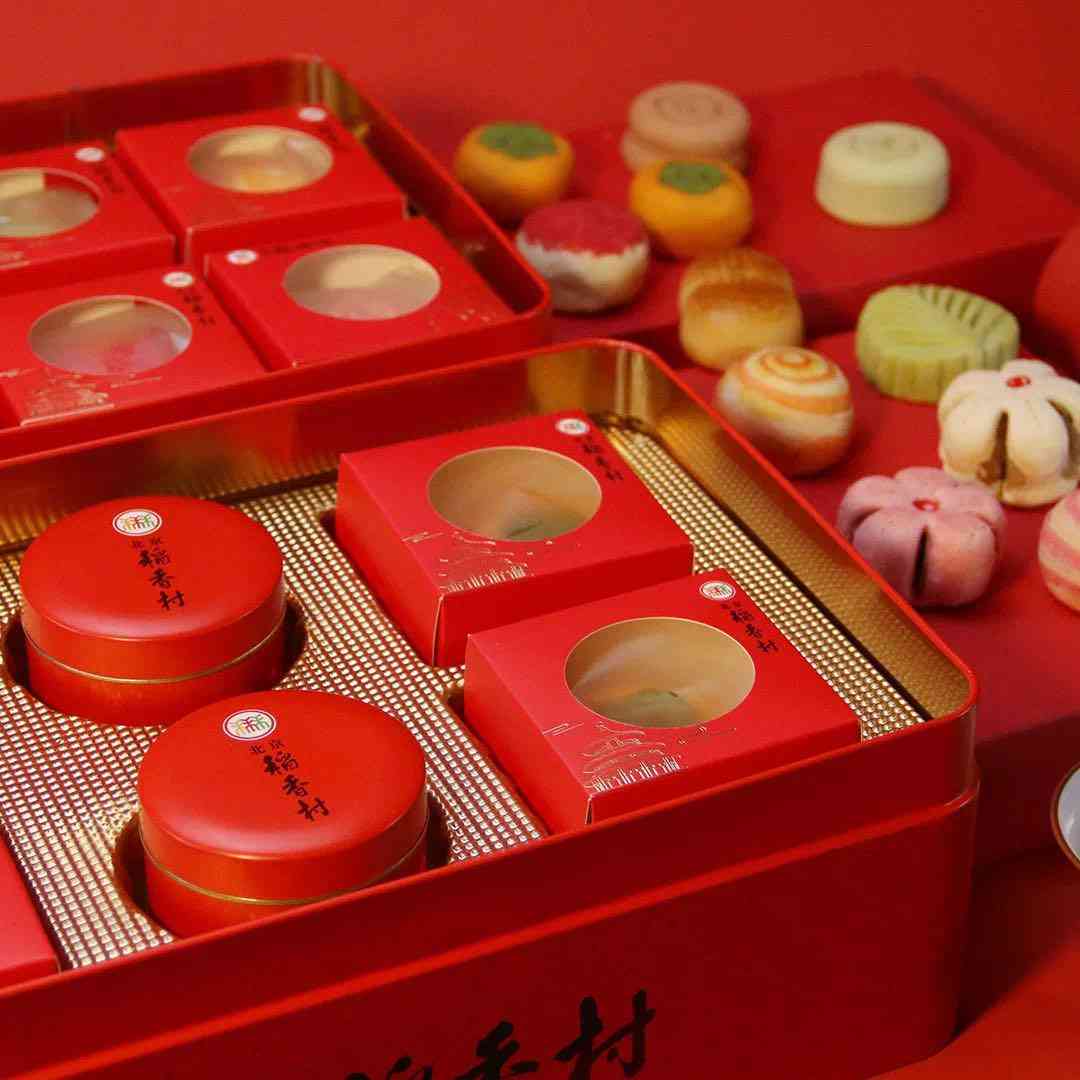 年味成品禮盒可以運送全國,整體糕點外形做了更加精細化的制作,有了新派中點的味道。