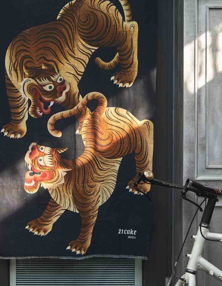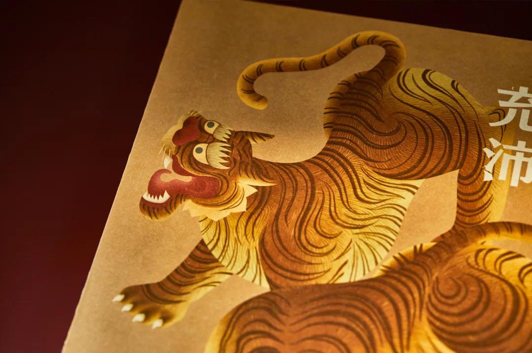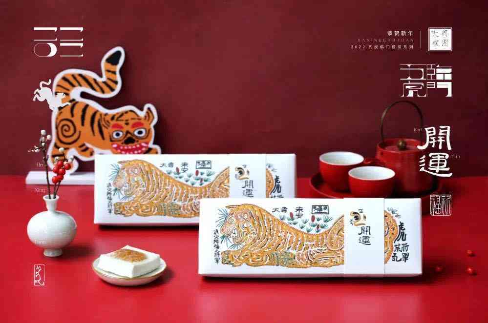 「虎門神」設(shè)計師門簾:手繪圖案神虎鎮(zhèn)宅作為烘焙品的周邊讓整體禮盒更完整也更顯檔次。