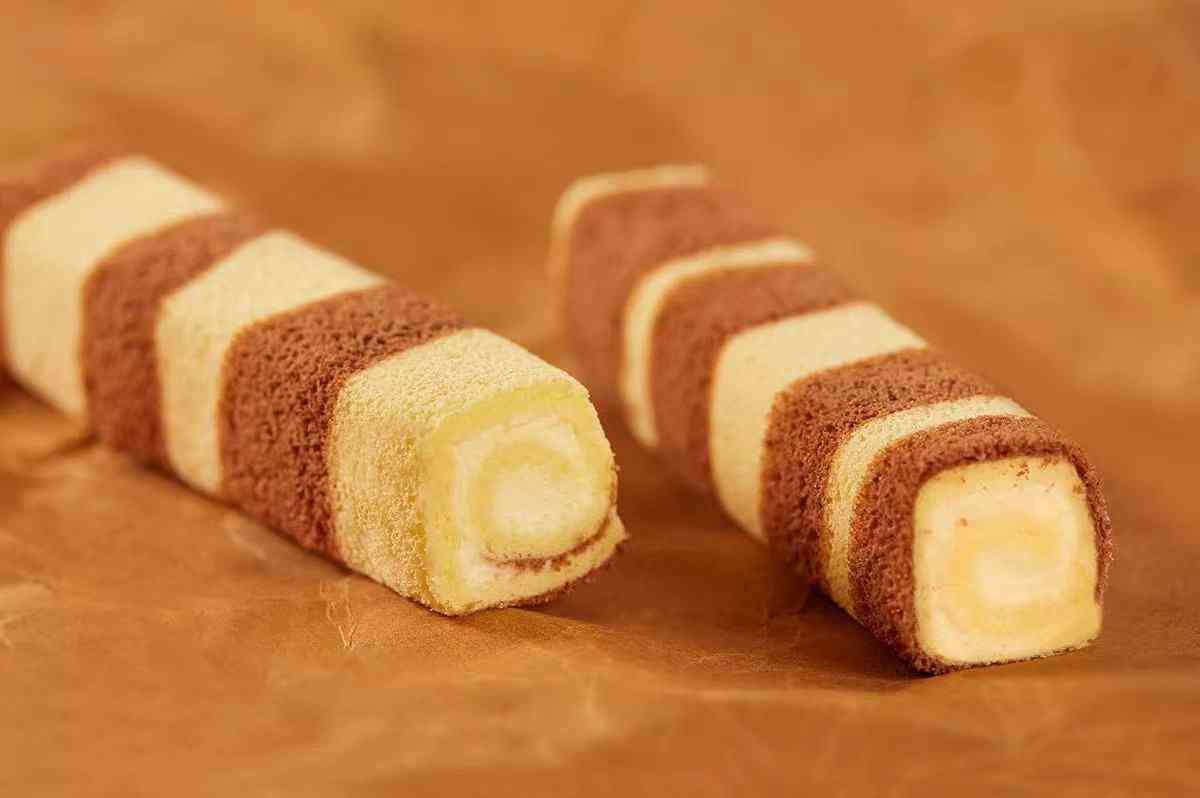 「噢·嗚」蛋糕:原味戚風(fēng)胚與巧克力胚組成虎紋模樣,填充白脫奶油&芝士奶油是常規(guī)的好吃與別樣的驚喜與可愛。