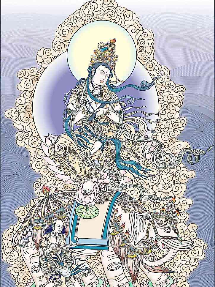 普賢菩薩是禮德和大行愿的象征,象征真理。他以智導(dǎo)行,以行證智,解行并進(jìn),完成求佛者的志愿,所以又稱“大行普賢菩薩”。