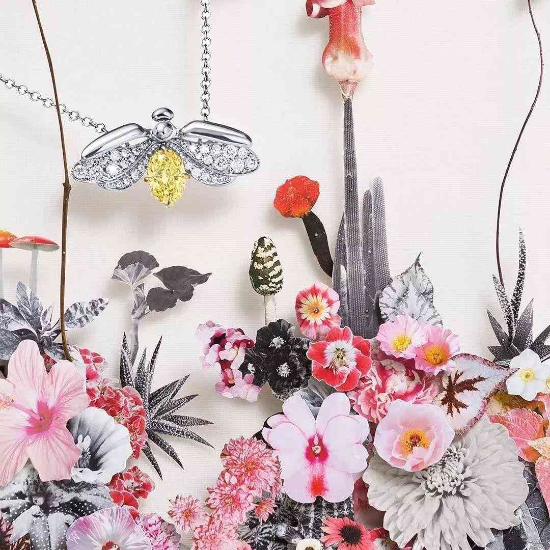 去年新品花韻Paper Flowers系列,靈感來自紙張裁剪做出來的紙花,鉆石、藍(lán)色坦桑石和黃鉆等不同種類的高級(jí)寶石結(jié)合鉑金創(chuàng)造出花瓣的形狀。