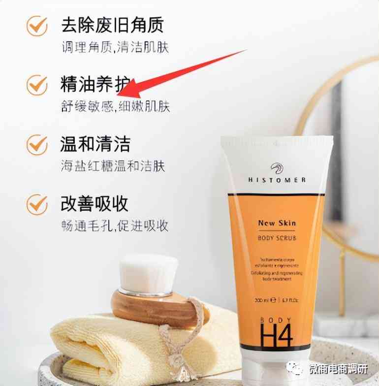 無獨有偶,在微信小程序“悅嘉麗客戶商城”當中,“海皙曼身體清潔磨砂乳霜”在商品詳情頁面內(nèi)也被指出具有舒緩敏感的作用,而舒敏與抗敏類似,并不是化妝品具有的功效,超出了化妝品定義,涉嫌超范圍宣傳和宣傳醫(yī)療作用。