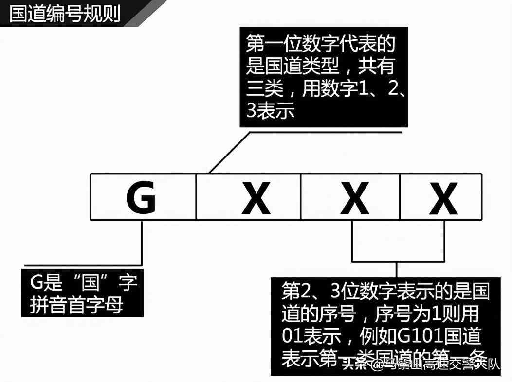 四位數(shù)組成,G+主線編號(hào)+ 數(shù)字0+ 城市繞城環(huán)線順序號(hào)組成。