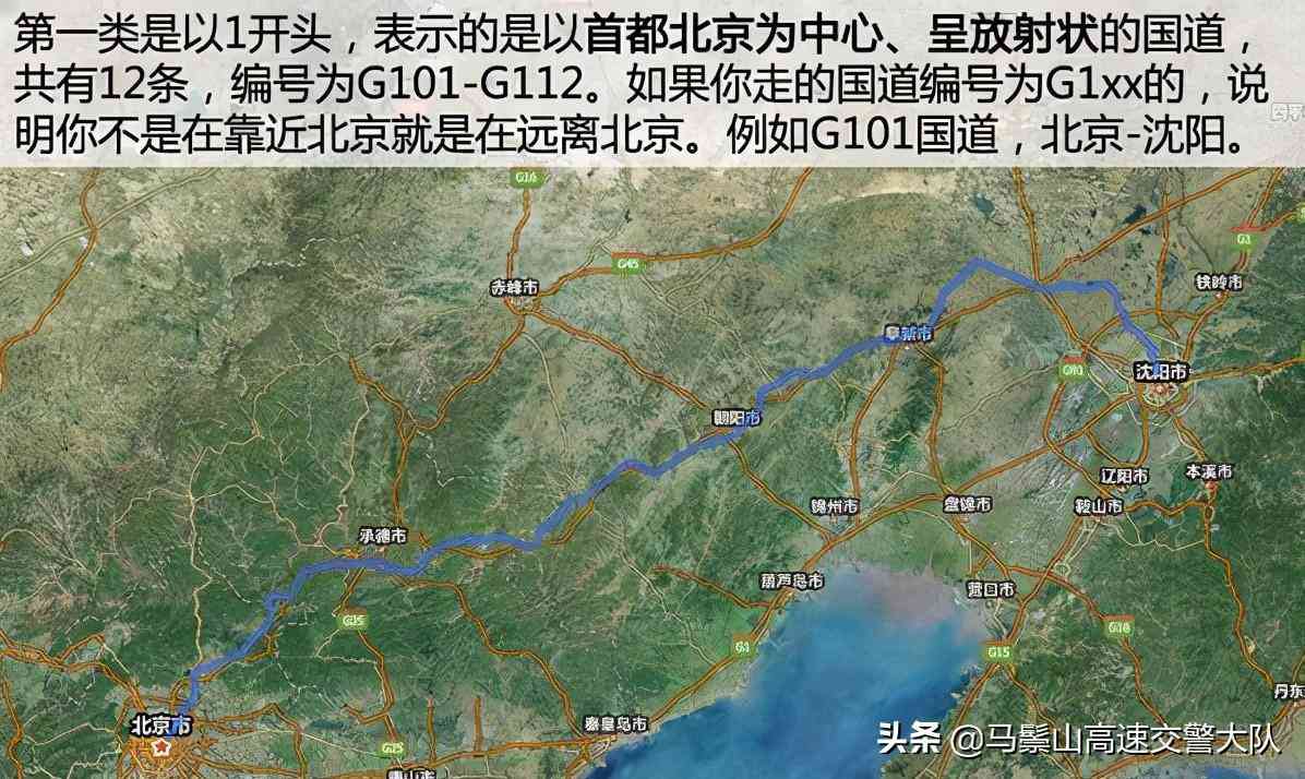 首都出發(fā)的,G+1位數(shù),由北按順時(shí)針?lè)较蚺判颉1热纾篏1京哈高速、G2京滬高速,里面都帶有一個(gè)“京”字。