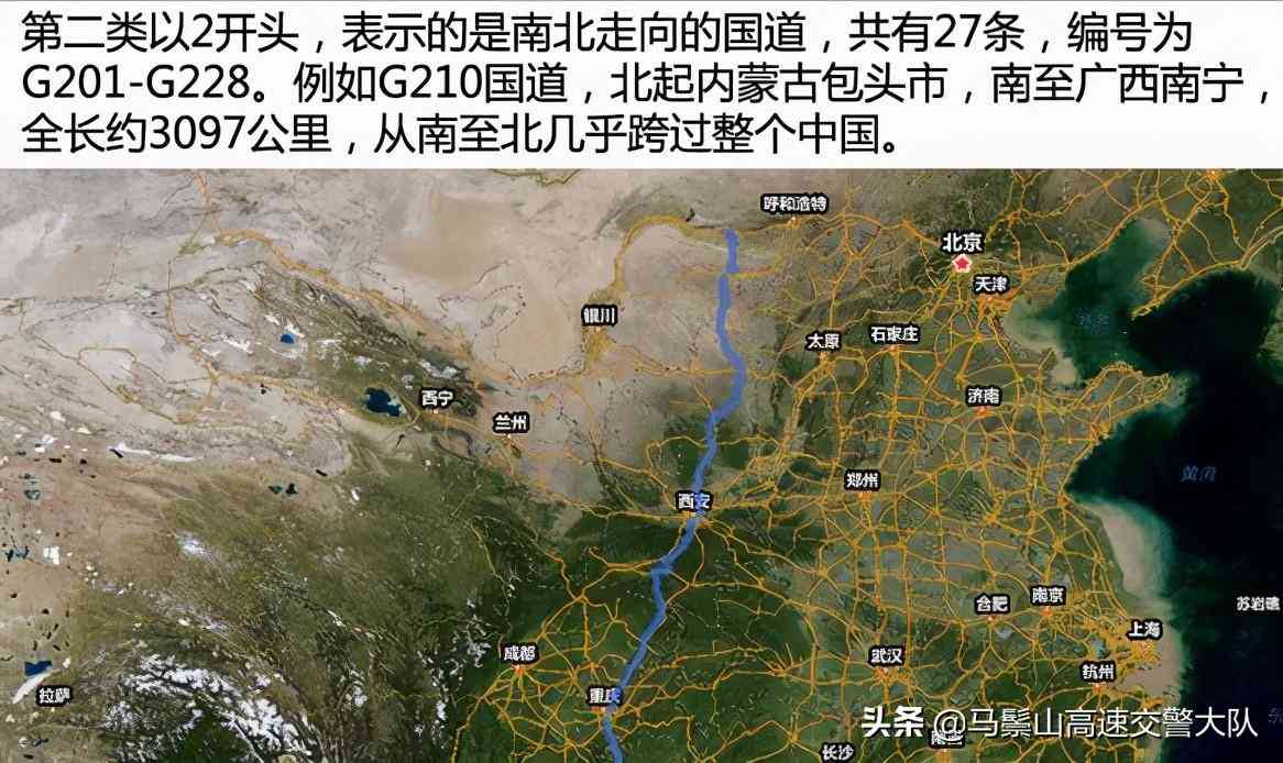具體編號(hào)為:G201—G248(其中G226被取消),表示南北走向的國(guó)道。