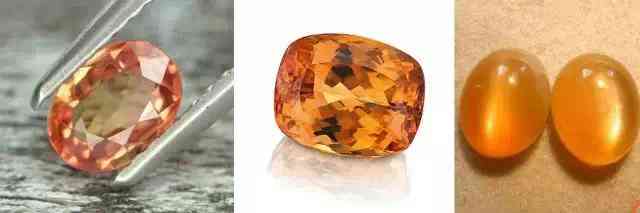 錳鋁榴石是最著名的橙色寶石,一些經(jīng)過熱處理的藍寶石也會展現(xiàn)出漂亮的橙色。好的火歐泊亦能展現(xiàn)出漂亮的橙黃色到橙紅色。