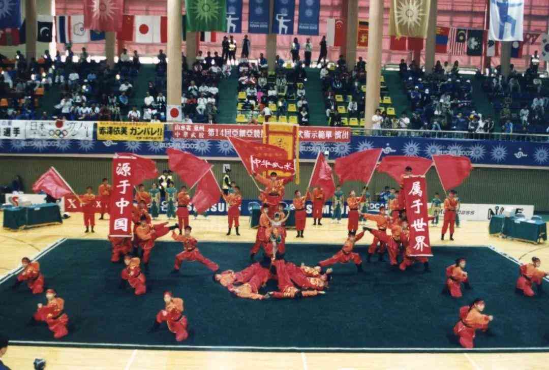 2002年10月在韓國釜山第十四屆亞運會武術(shù)比賽開幕式上專場演出大型武術(shù)劇《中華武魂》。受訪者供圖