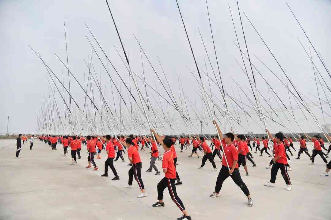 為了不讓桿子晃動、顫抖,學(xué)生們在煙臺的海邊手舉長桿頂風(fēng)練習(xí),在海邊風(fēng)最大的時候,要做到手伸出去之后保持桿子不動,也不會相互碰到。再返回普通的訓(xùn)練場后,海邊訓(xùn)練的效果凸顯。