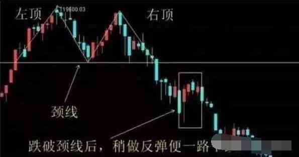 (4)股價(jià)跌破頸線的時(shí)候,頸線支撐會(huì)變作壓力,股價(jià)會(huì)出現(xiàn)回抽,短暫反彈到頸線附近,是最后的逃命機(jī)會(huì);