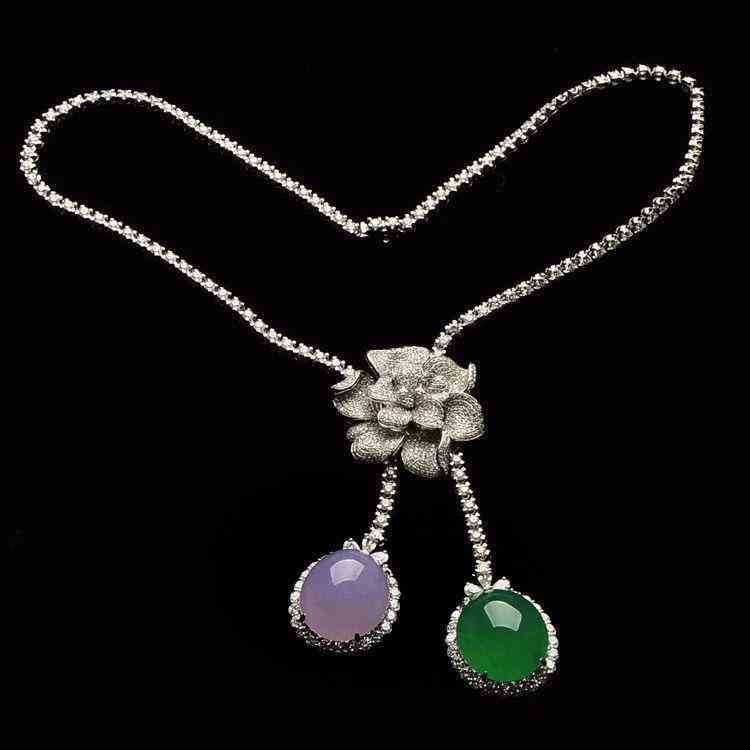冰種紫羅蘭/翠色鑲白金鉆石項鏈