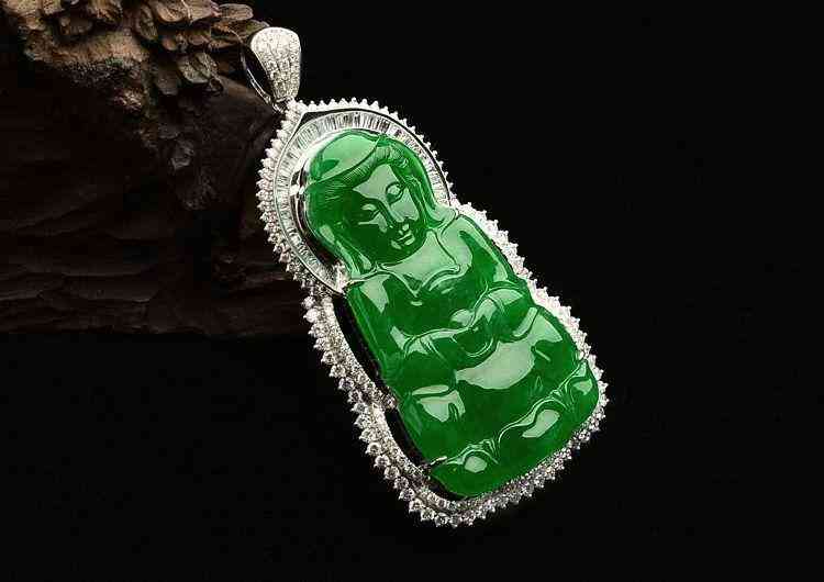 鑲白金鉆石糯冰種陽綠觀音胸墜