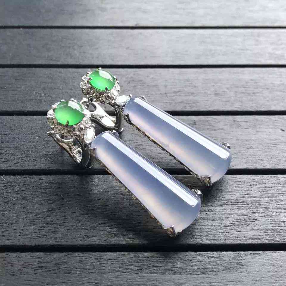 鑲白金鉆石冰種紫羅蘭/綠晴水耳墜